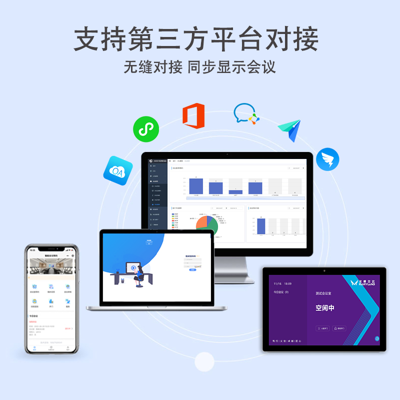 • 系统协同避免冲突:通过与企业日程管理系统的深度融合,签到数据与会议信息实时同步,门牌屏幕动态更新会议室使用状态(空闲/占用/预约中),参会者一目了然,减少因信息差导致的会议室冲突。